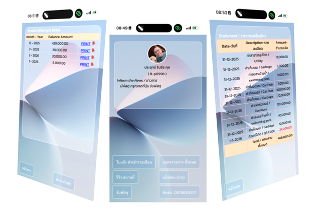 - รายงานข้อเสนอแนะ และวิจารณ์จากลูกค้า รายงานการซ่อมบำรุงห้องเช่า